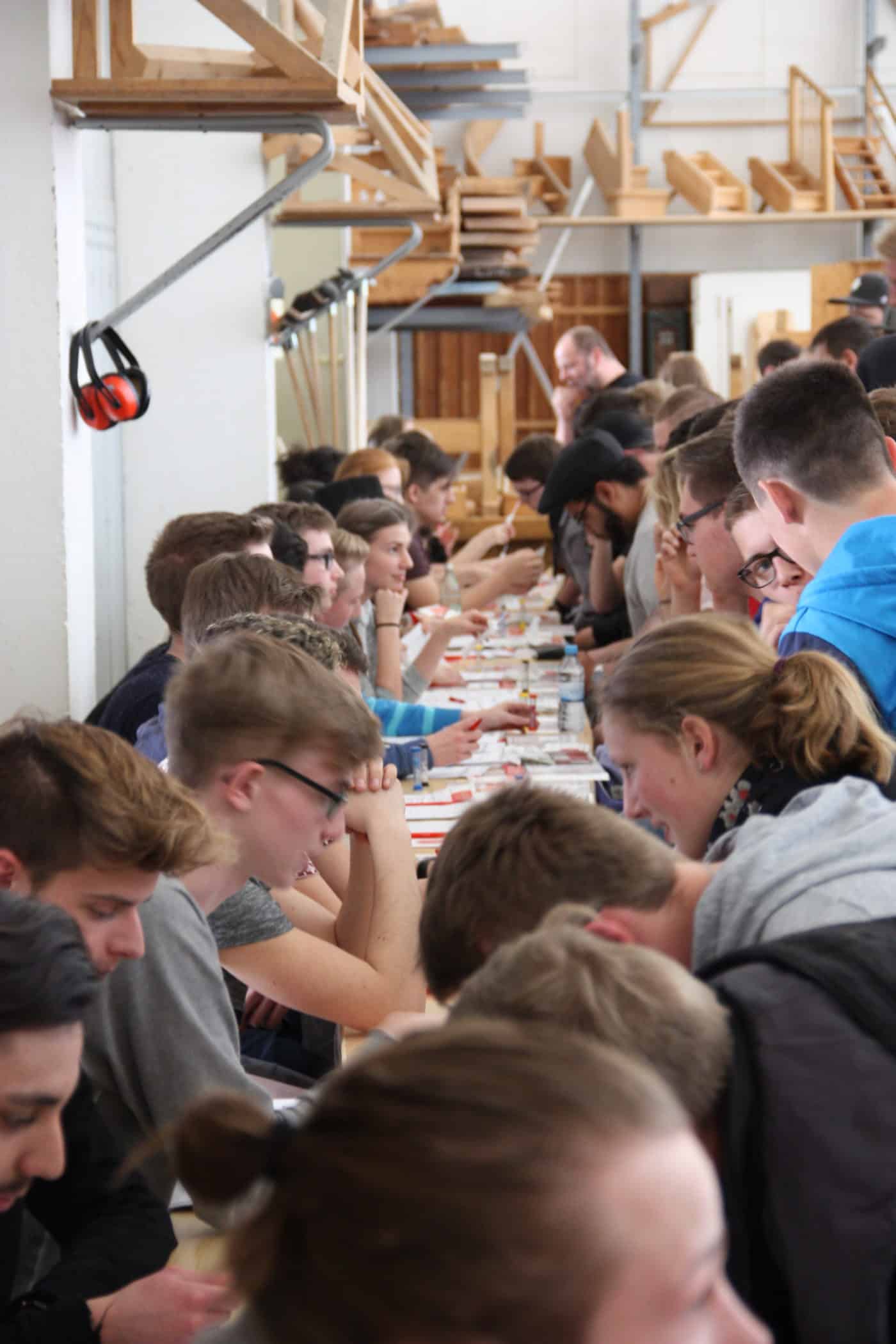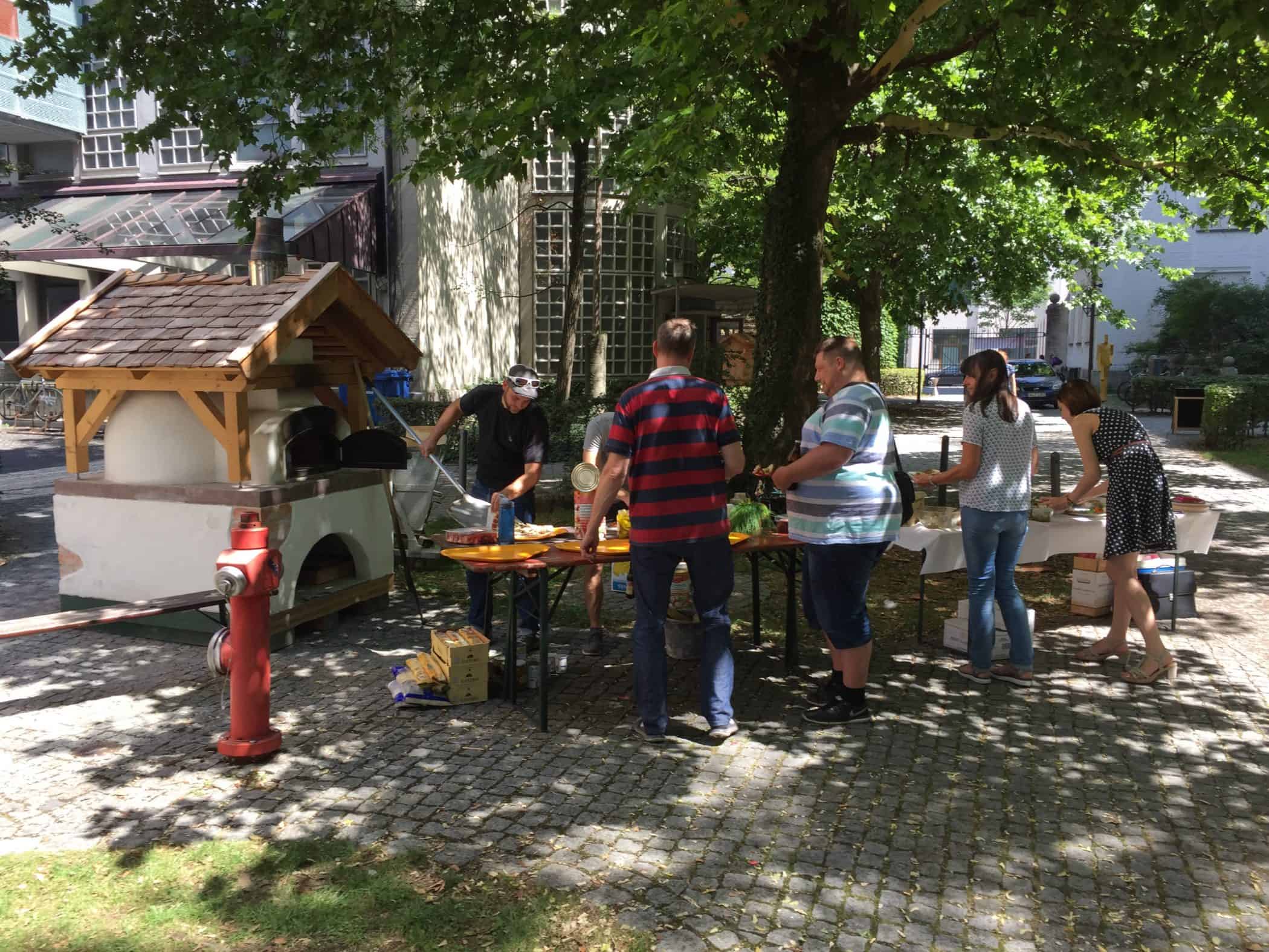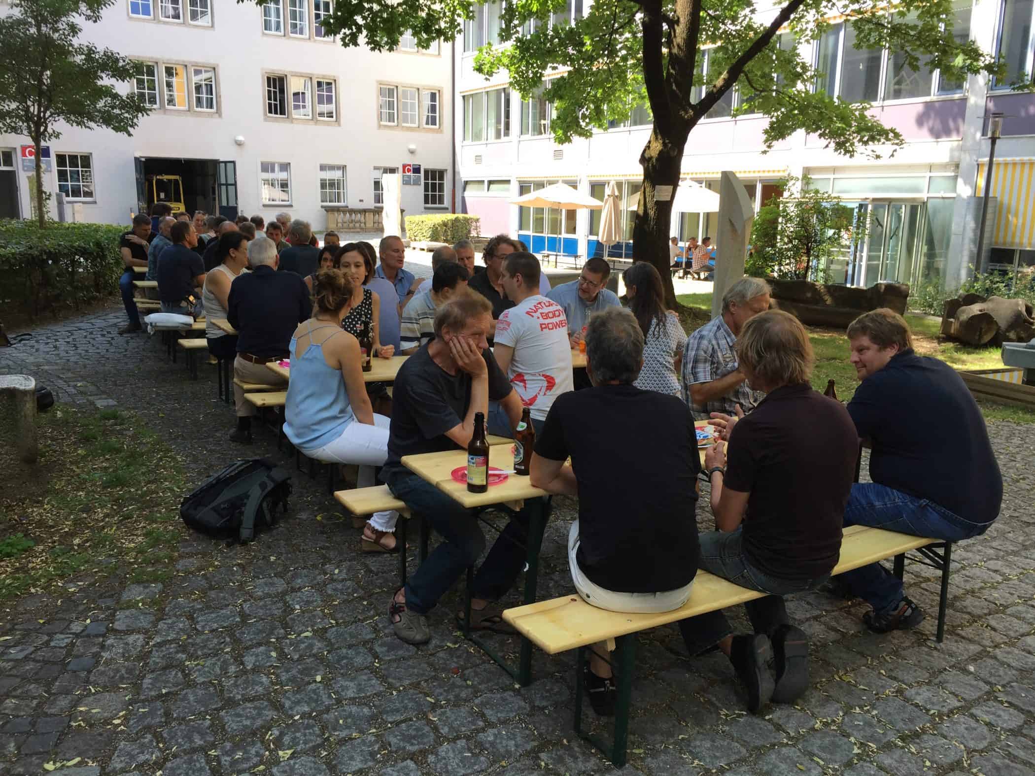 Die Begründung der Schulpartnerschaft, unter der Steinmetzen der Berufsschulen aus St. Gallen und München in Zukunft zusammenarbeiten wollen, wurde feierlich begangen und mit einer köstlichen, traditionellen „St. Galler Bratwurst“, die jeder Teilnehmer bekam, wohlschmeckend bestärkt.