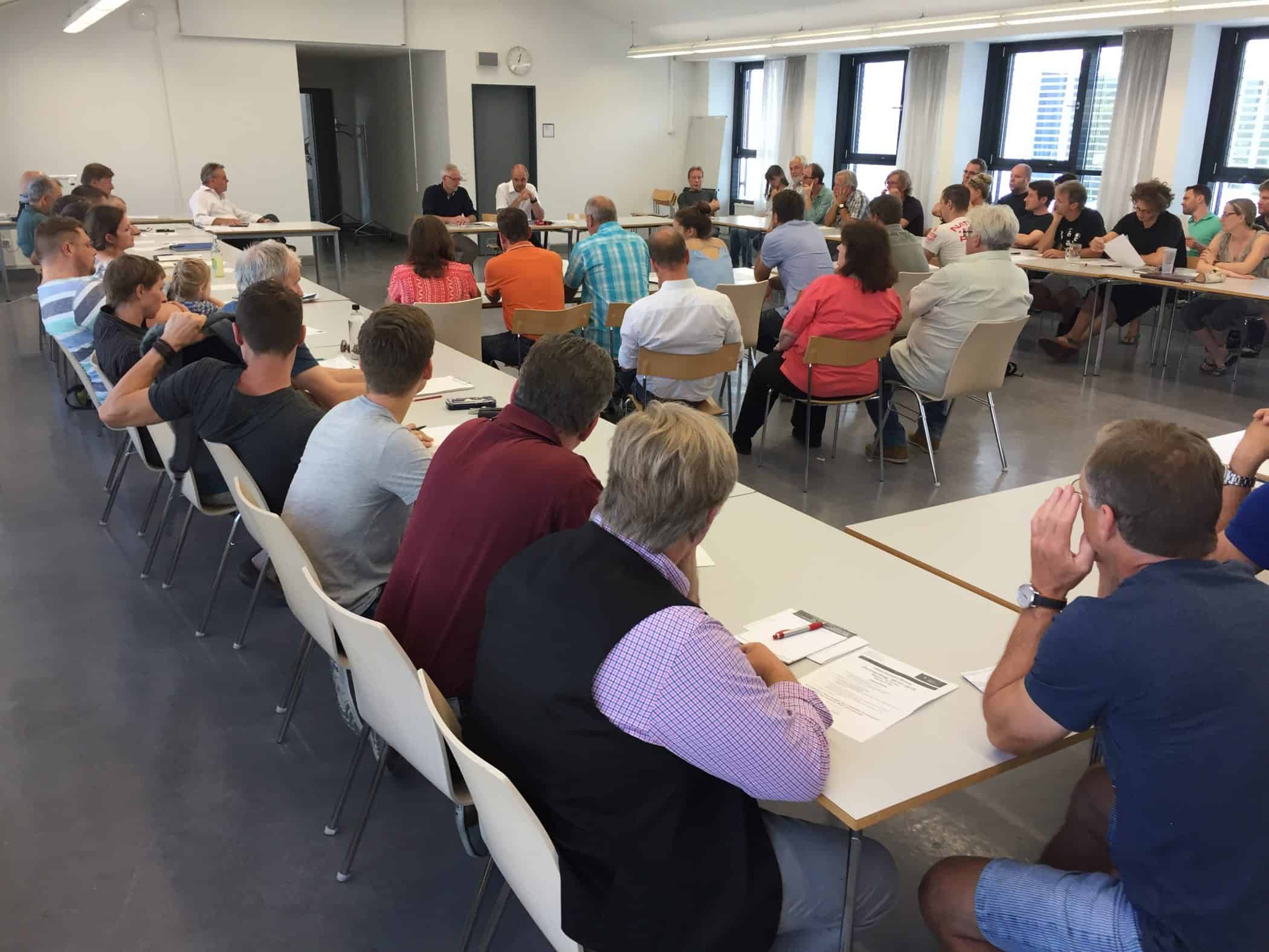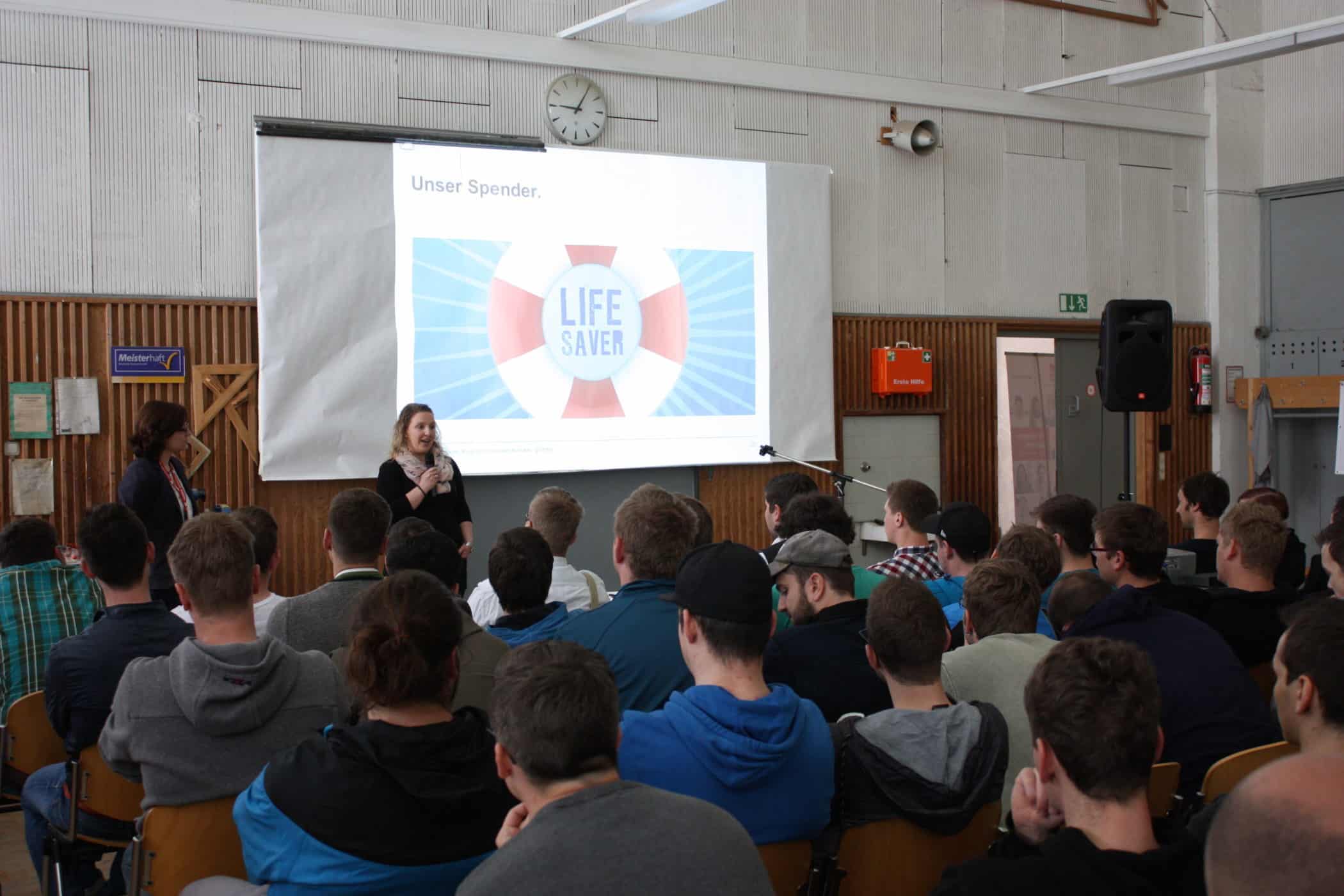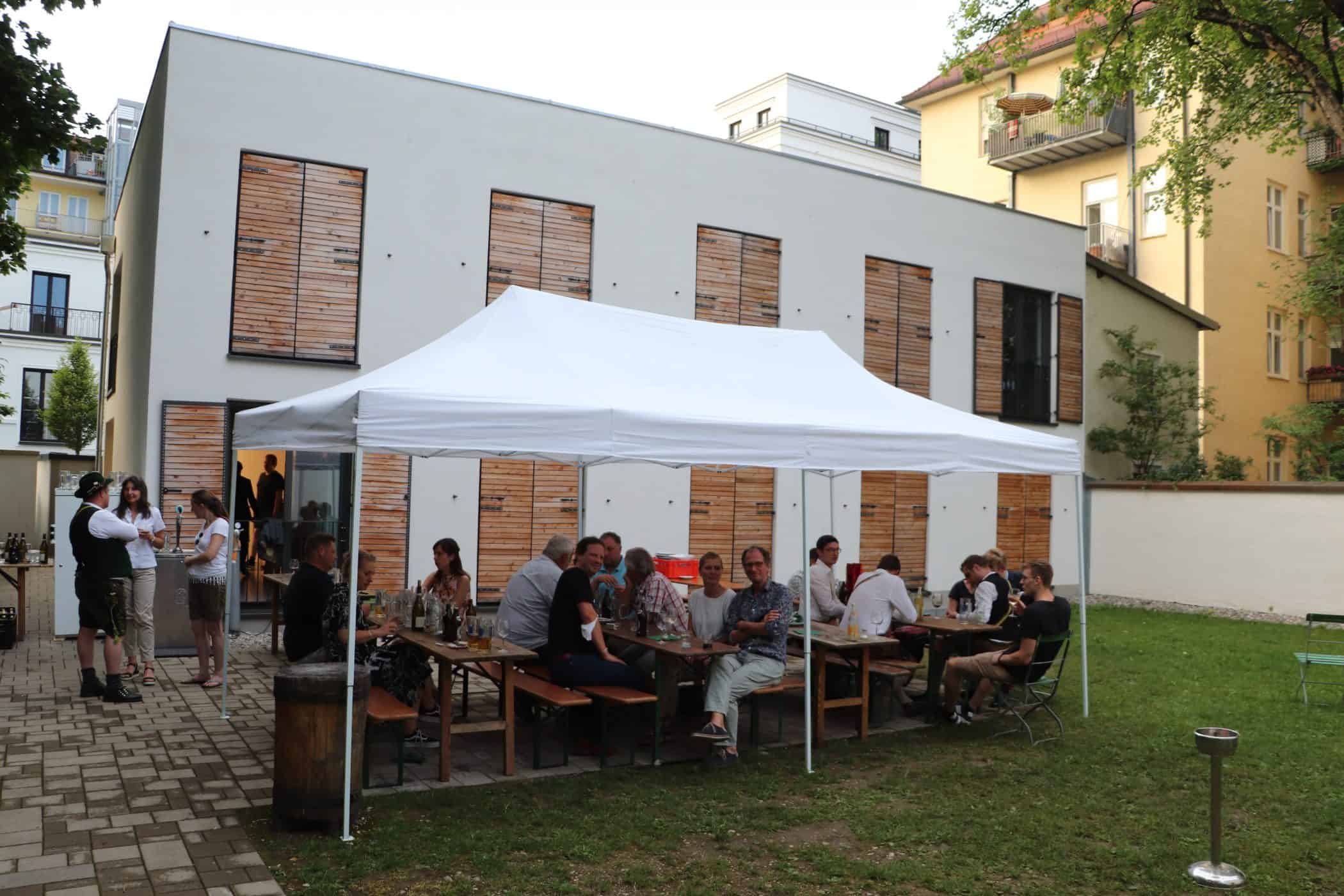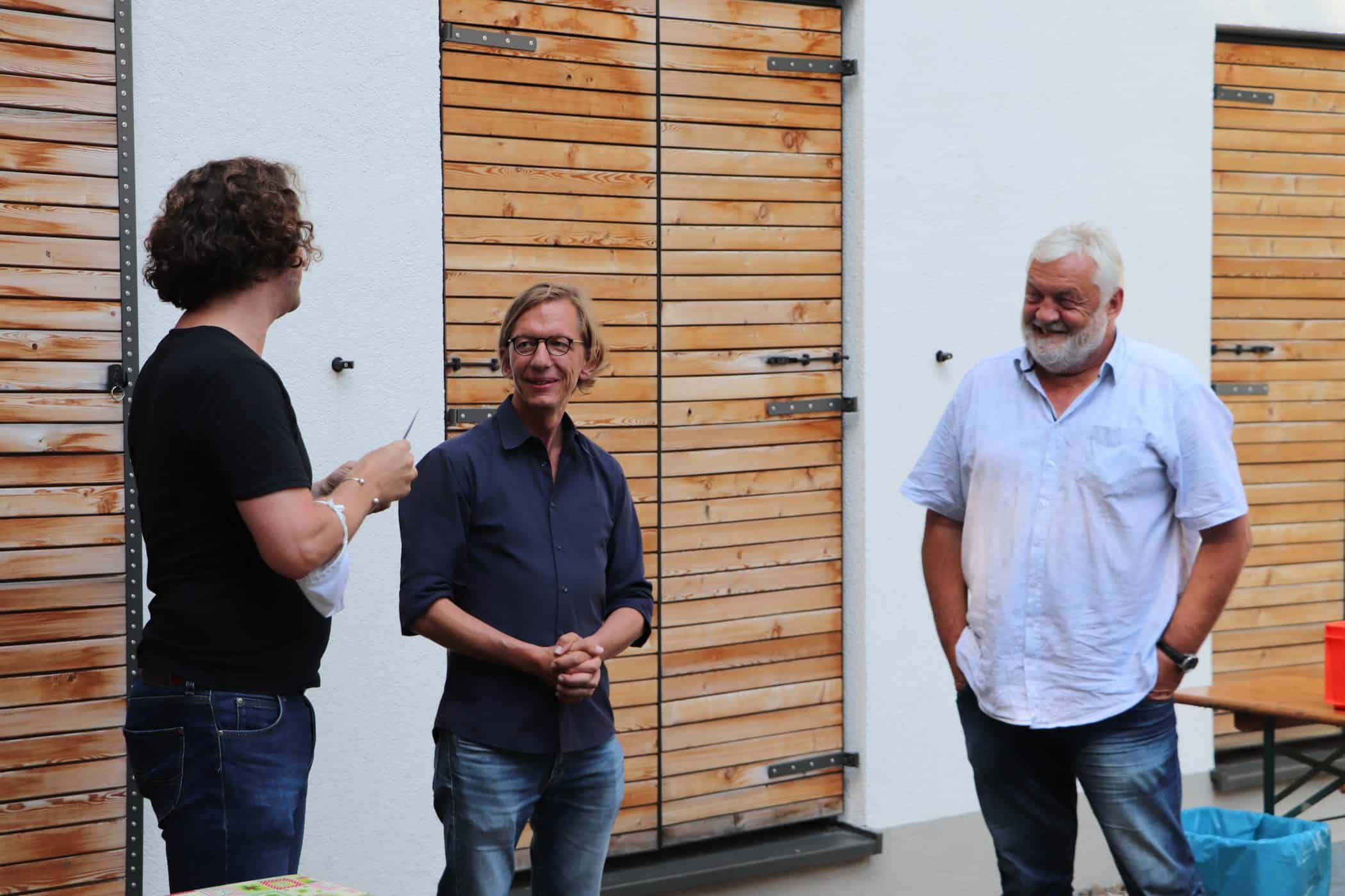 Die Begründung der Schulpartnerschaft, unter der Steinmetzen der Berufsschulen aus St. Gallen und München in Zukunft zusammenarbeiten wollen, wurde feierlich begangen und mit einer köstlichen, traditionellen „St. Galler Bratwurst“, die jeder Teilnehmer bekam, wohlschmeckend bestärkt.